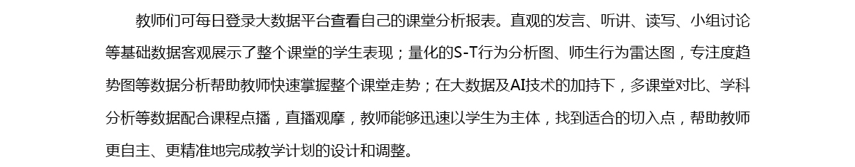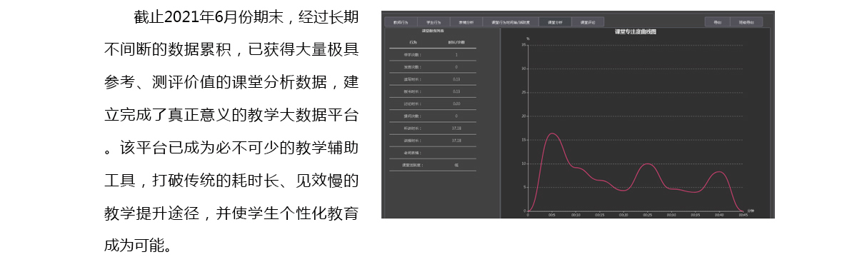 課堂活躍度數據結合相關因素的總結,幫助教師和管理者推動教學質量提高的進程。