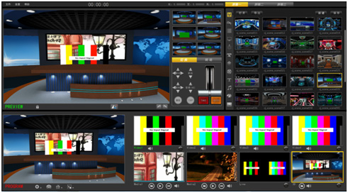 創視通校園電視臺無需使用昂貴的攝像機傳感系統,現場表演與3D場景實時無縫結合,支持4路HD-SDI輸入,8路導播切換、3路摳像、實時切換、模擬搖臂推拉搖移的變換效果,是一款廣播級虛擬演播室產品。