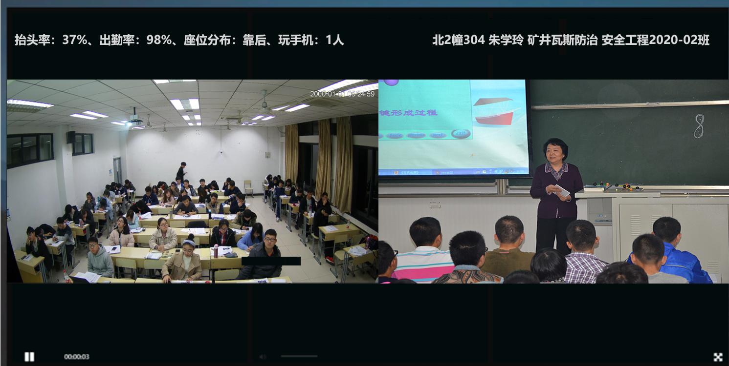 ①支持多畫面巡課觀看,支持切換畫面布局,支持任意單畫面全屏、多畫面全屏觀看,巡課界面可展示課程信息和實時AI分析數據,課程信息可包含:院系、班級、課程節次、授課教師等信息,AI分析數據可包含:出勤率、抬頭率、座位分布、玩手機人數等數據。