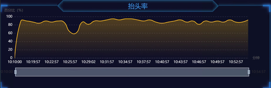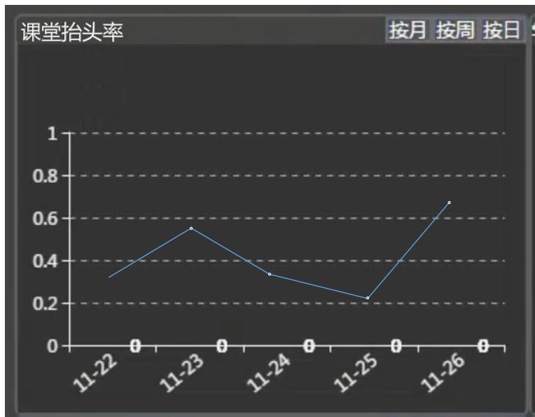 課堂抬頭率趨勢圖統計學生從課程開始到課程結束整個時間段內學生整體抬頭情況,該數據客觀反饋課堂抬頭率。